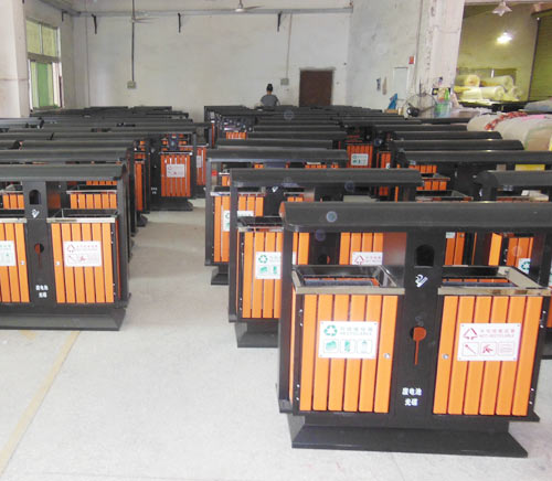 2.鋼木垃圾桶工藝:鋼木果皮箱在完成鋼材支架和實木貼裝過后,還會采用先進噴塑技術,對表面進行防腐處理,同時還要經歷耐高溫測試,進一步提升鋼木果皮箱的品質.
