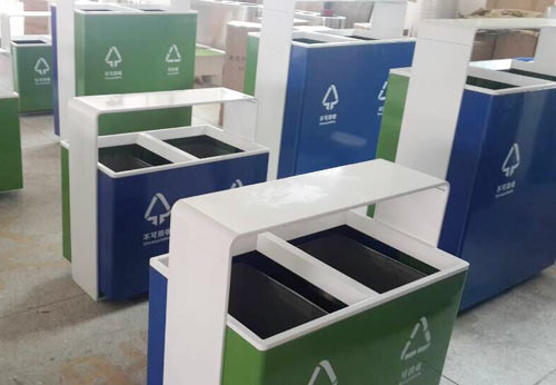 三、垃圾桶桶體的防腐抗蝕性能:這也是最重要的,畢竟戶外使用,風吹雨淋日曬,對桶體的傷害很大,此時產品的防腐抗蝕性能顯得特別突出重要 1、在制造胚體的過程中,就應該對鋼板進行除銹處理,再配化磷化工序,在表面生成一層磷化層,防銹防蝕性能大大提升; 2、桶體表面應使用靜電噴塑工藝,使用通過國家質量檢測的高端塑粉,既可將桶體的外觀顏色調配的光澤艷麗,又可對桶體里層鋼板起到保護作用,戶外長久使用,也不怕褪色開裂;