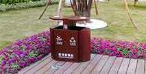 屋形戶外鋼木垃圾桶與邵陽(yáng)地產(chǎn)環(huán)境很搭