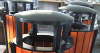 圓形戶外鋼木垃圾桶廠家生產圖