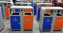 戶外推蓋式四分類金屬垃圾桶廠家生產圖