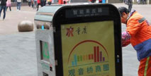 重慶觀影橋步行街正在打造智慧商圈,此次投入使用的150個智能果皮箱內均安裝了一臺WIFI發射器,可同時為60個人提供免費無線WIFI。 圖為...