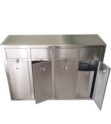 深圳新標(biāo)準(zhǔn)城中村街道社區(qū)不銹鋼五分類(lèi)垃圾桶由有害垃圾、玻璃、金塑紙(為金屬、塑料、紙張的簡(jiǎn)稱(chēng))、廚余垃圾、其他垃圾這5分類(lèi)不銹鋼垃圾桶組合而成。其中金塑紙、其他垃圾日常產(chǎn)生量較大,所以分類(lèi)收集容器也