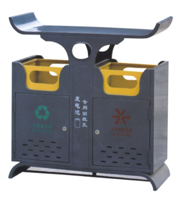 鋼制垃圾桶 采用優質冷軋鋼材料經剪鈑下料、折彎、沖壓、焊接、打磨、等工藝:表面經除油、防銹、酸洗磷化加工而成