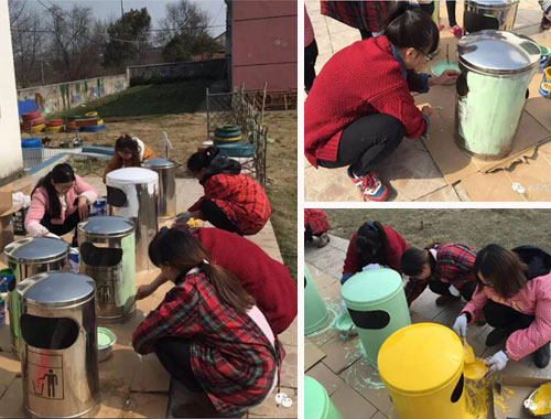 為了進一步提升校園文化,創(chuàng)建更加優(yōu)美的育人環(huán)境,推動幼兒園建設朝著凈化、美化、規(guī)范化的方向發(fā)展,幼兒園青年教師對園內垃圾桶進行美化、裝飾。 教師們先選稿、討論設計方案,再畫底稿,最后調油漆上色。經過老師們的巧手布置,原本單調呆板的垃圾桶一個個鮮活起來。孩子們來園看到一個個五彩繽紛的垃圾桶興奮極了,非常樂意把垃圾撿起來扔進漂亮的垃圾桶里。 據(jù)悉,本次活動是該園繼設計創(chuàng)意家園聯(lián)系欄、廢舊輪胎變廢為寶、裝飾走廊墻飾等活動后的又一次環(huán)境創(chuàng)新活動。這些活動不僅有效促進了該園教師環(huán)境創(chuàng)設理念的更新、提升了創(chuàng)設技能和品位,同時促進了教師之間的相互學習,認識到了環(huán)境創(chuàng)設對幼兒發(fā)展的價值,更為自己積累了有益的經驗,為以后更好的開展環(huán)境創(chuàng)設打下堅實的基礎。