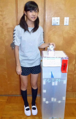 制作垃圾桶的契機始于去年暑假作業的自由研究。神谷看到經營超市的祖父分揀自動售貨機垃圾桶中鐵罐和鋁罐,從中得到啟發