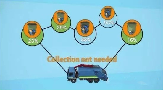 Enevo ONe作為一個基于超聲波傳感器的廢物回收系統(tǒng)。傳感器將收集到的垃圾箱和垃圾回收地的傳感數(shù)據(jù)通過低功耗的LoRa網(wǎng)絡(luò)傳輸?shù)綌?shù)千米外的LoRa基站,再傳送到服務(wù)器。通過分析這些數(shù)據(jù),垃圾管理者能更直觀的了解轄區(qū)內(nèi)各個垃圾桶的填充狀態(tài),并為清潔的車輛規(guī)劃最佳的回收路線,從而節(jié)省環(huán)衛(wèi)機構(gòu)的運營成本。