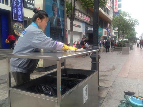 江漢路步行街地區(qū)管理辦公室相關(guān)負(fù)責(zé)人介紹,去年底,中山大道改造工程封路施工,江漢路每天往來人流量較以往增長兩到三倍。與此同時(shí),封路后日均垃圾量激增至6噸,較以往增長3倍。該負(fù)責(zé)人解釋,由于上一批果皮箱容量太小,無法滿足需求,因此從去年開始,就在逐步設(shè)計(jì)新果皮箱的樣式大小。