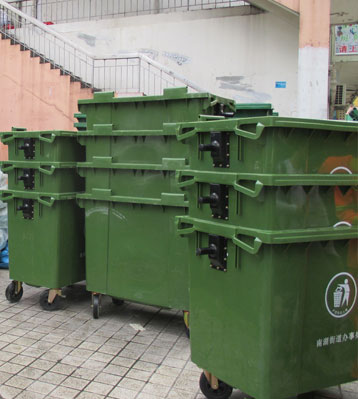 蘇州市政為加強市容環衛責任制落實,督促店家嚴格落實市容環衛責任制,履行市容環衛責任。環衛設備上選用欣方圳垃圾桶廠家660L大型塑料環衛垃圾桶,桶身掛車部分特別加厚可直接上環衛掛車,降低環衛工人勞動強度