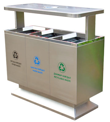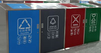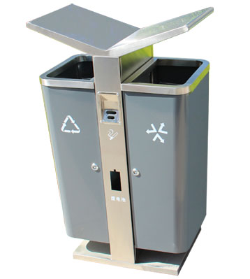 小區垃圾分類站點四類垃圾分類垃圾桶,不銹鋼無疑是較為理想的材質。它戶外防銹蝕效果好,表面金屬光澤高檔美觀,污漬也易清理。不銹鋼分類桶產品款式造型易定制,不受尺寸大小限制,滿足個性化需求,擺放于惠