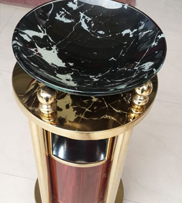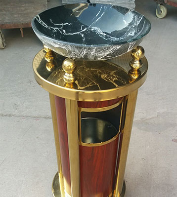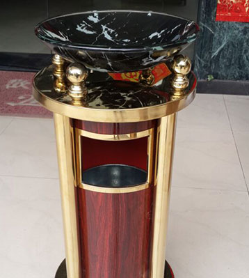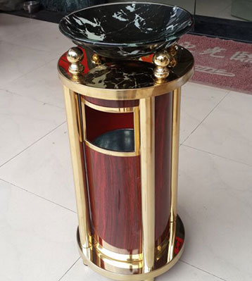 • 產品材質:鈦金垃圾桶采用天然的大理石與優質冷軋鋼板或不銹鋼鋼板制作而成,四面大理石用鋼板螺絲固定于桶體,有內桶,方便提倒垃圾,桶頭煙灰盅可放白石子可清洗,鋼板經折彎沖壓一次性成型。產品一律用室外粉靜電噴塑,經過180°的高溫,延長垃圾桶使用壽命,顏色持久不變亮麗如新。
