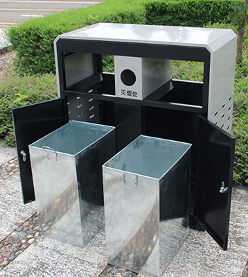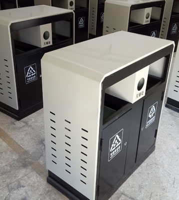 戶外鋼板烤漆環(huán)保垃圾桶批量生產(chǎn)圖