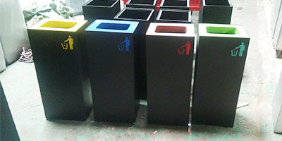 欣方圳專業生產精品定制垃圾桶,車間有數控折彎機、數控沖床、滾圓機、數控車床、激光切割機、送樣機、鏜床、二保焊機等行業先進設備。