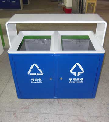 欣方圳鋼制戶外分類垃圾桶均選用優質的冷軋鋼板經噴砂處理去油去銹后,鋼板表面抗紫外線丙稀酸油漆多層噴涂,