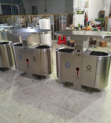 欣方圳小區不銹鋼分類垃圾桶工廠生產圖