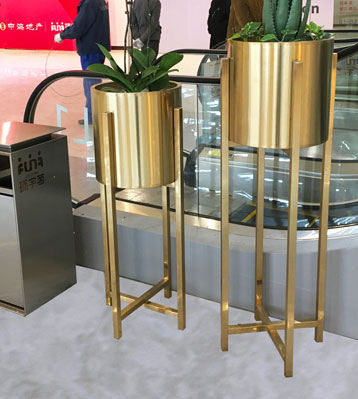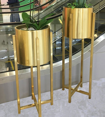 商場電鍍香檳色不銹鋼花盆圖