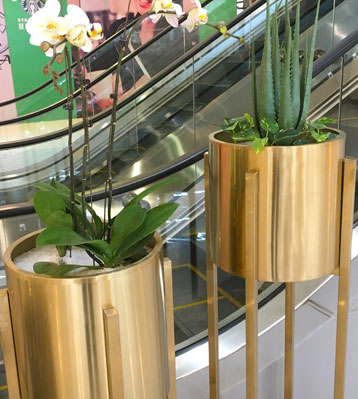 商場金色不銹鋼花盆現場擺放圖