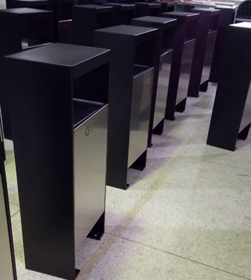 • 使用范圍:戶外搖蓋不銹鋼分類果皮箱表面光滑、亮麗,是電梯口、寫字樓、學校、物業、賓館、酒店、機場、汽車站等擺放的首選。