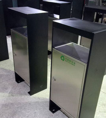 戶外搖蓋不銹鋼分類果皮箱欣方圳工廠生產圖