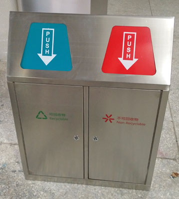 • 使用范圍:不銹鋼推蓋式果皮箱表面光滑、亮麗,是電梯口、寫字樓、學校、物業、賓館、酒店、機場、汽車站等擺放的首選。