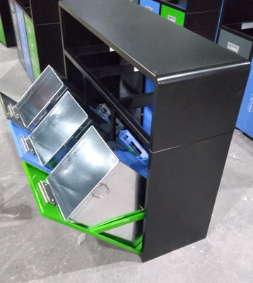 戶外烤漆兩分類干濕垃圾桶批量生產圖