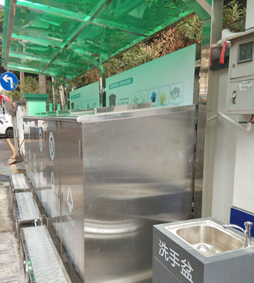 欣方圳不銹鋼社區(qū)垃圾收集站垃圾分類收集亭現(xiàn)場擺放圖