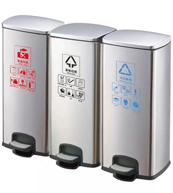 欣方圳90L家用室內不銹鋼腳踏三分類垃圾桶批量生產圖