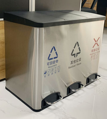 欣方圳30L45L小區酒店不銹鋼室內分類垃圾桶緩降桶門圖