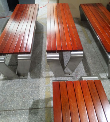 欣方圳不銹鋼戶外休閑凳凳面防腐木材質制作流程示意圖,工藝領先,品質卓越,真正經久耐用。