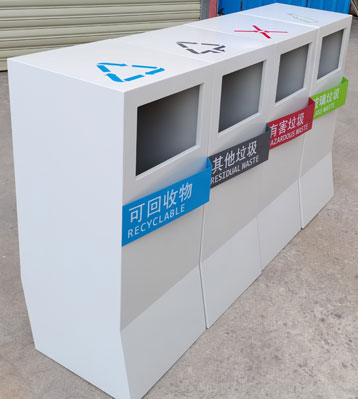 • 使用范圍:不銹鋼四分類果皮箱表面光滑、亮麗,是市政、企業、寫字樓、酒店、機場、商場等戶外分類垃圾收集擺放的首選。