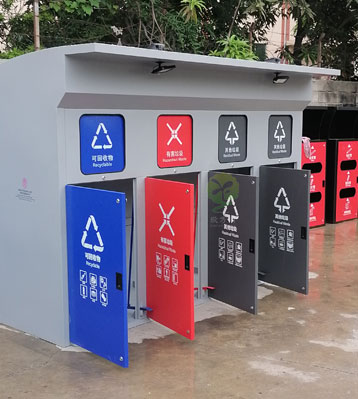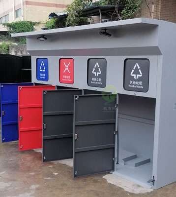 • 使用范圍:小區生活垃圾分類投放屋應用于花園小區垃圾分類、物業社區、居民樓院、社區街道、單位庭院等場所分類垃圾收集。