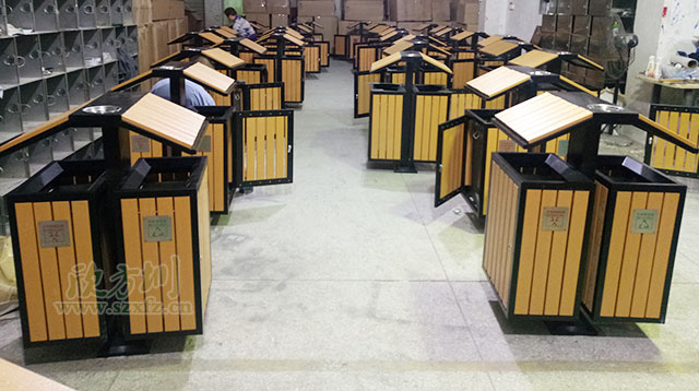 屋形鋼木分類垃圾箱工廠生產(chǎn)圖