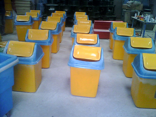 玻璃鋼垃圾桶桶身和內膽部分,采用高級玻璃鋼材質一次成型,經過打磨、除塵 、噴漆等一系列后期工藝然后出成品。
